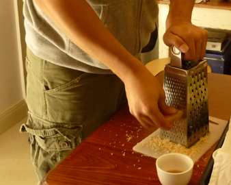 玄米餅をチーズを削る要領でガリガリ。