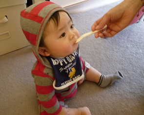 赤ちゃんたち、初めての玄米体験なので食べてくれるか心配でしたが、