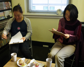 お茶はいつも有機番茶ですが、この日はタンポポコーヒーにして、お楽しみのマクロビのお菓子は玄米パフのクリスピーボール。