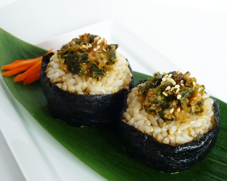2月のおやつは、血液を強化して免疫力アップ効果のあるネギ味噌を入れた玄米おにぎりです。お楽しみに♪