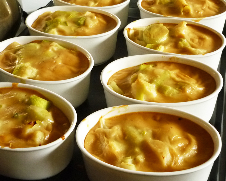 みんな大好きなチーズとホワイトソースをを乳製品なしで作り、グラタンに仕上げます♪ リーク、カリフラワーなど旬の野菜をホワイトソースで合せ、秘伝の(!)チーズをのせてオーブンで焼くと、不思議〜!!! 見た目も、味も、あの熱々グラタンができ上がります。