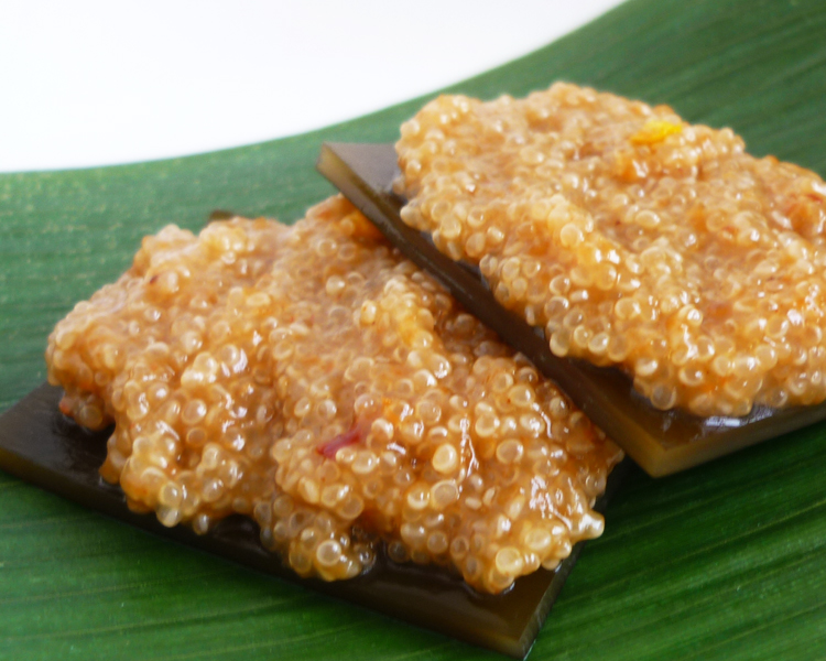 ●Komochi kombu – deliciously seasoned amaranth with kombu to emulate herring caviar