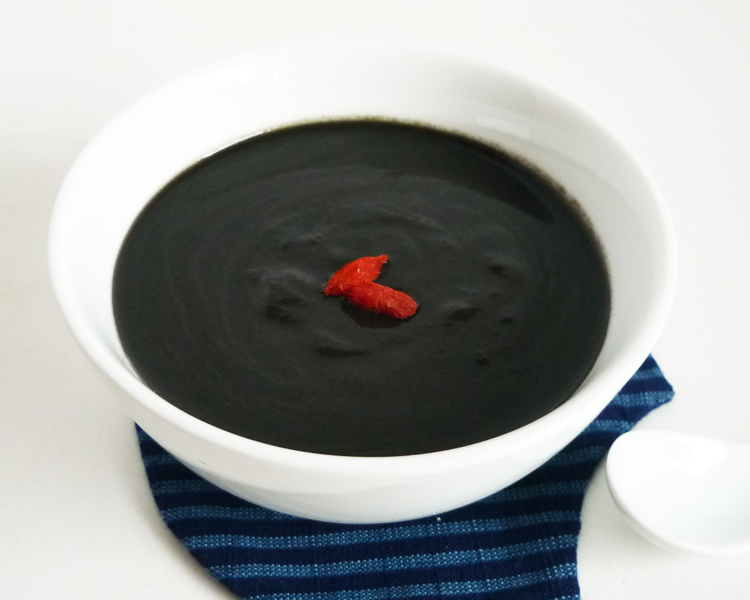 中華のおかずは大根とシイタケのうま煮と漬物、ラーパーツァイ、蒸した青菜、黒ごま汁粉も一緒に味わいます。