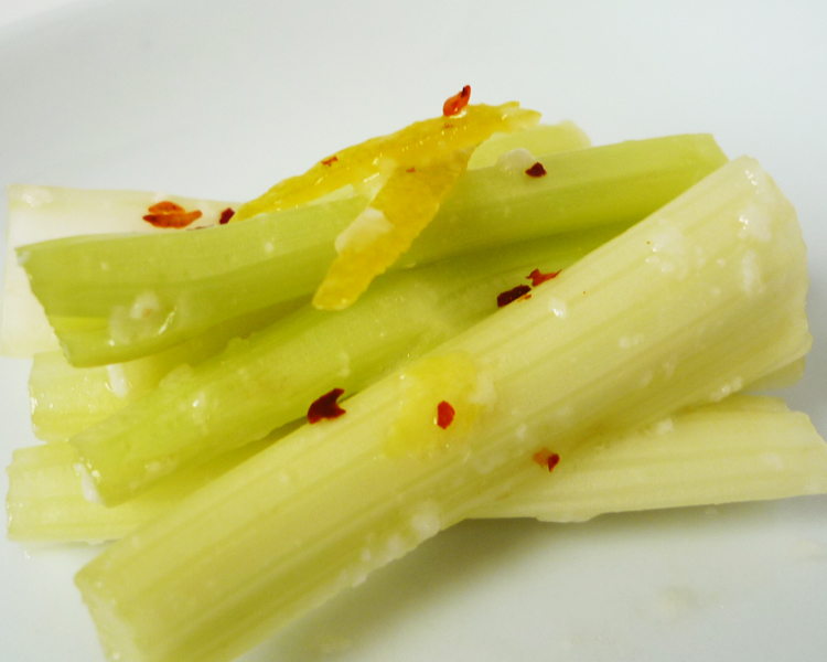 IPPIN AWASE YUZU, a traditional Japanese fresh citrus “Yuzu” wine paired with ‘Shio-koji’ pickled celery, ‘Goma-ae’