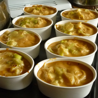 冬の食卓を和ませる熱々グラタンをミルクもバターも使わずに作ります!●リークとカリフラワーのグラタン●ロースト・パンプキンサラダ●ダイコンとニンジンのピクルス●小豆と雑穀のおしるこ
