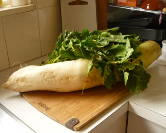 先週のことです。今まで見たこともないぐらいデカイ、しかもオーガニックのダイコンが我が家へやってきました。 どんなにすごいかを写真に撮るために家中で一番大きなまな板の上にのせてみましたら、頭もしっぽもエラくはみ出して、カメ続きを読む “すごいダイコン その1”
